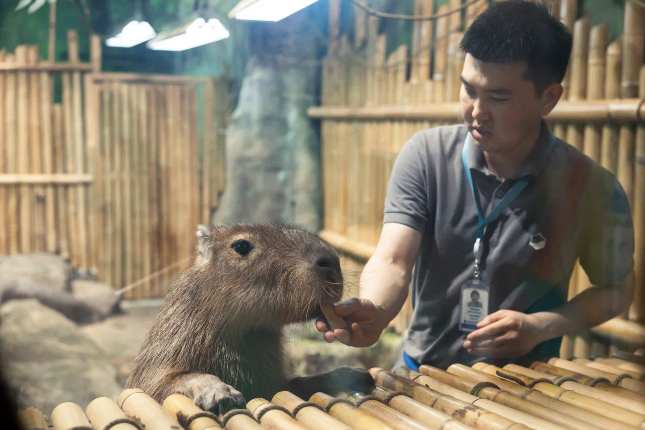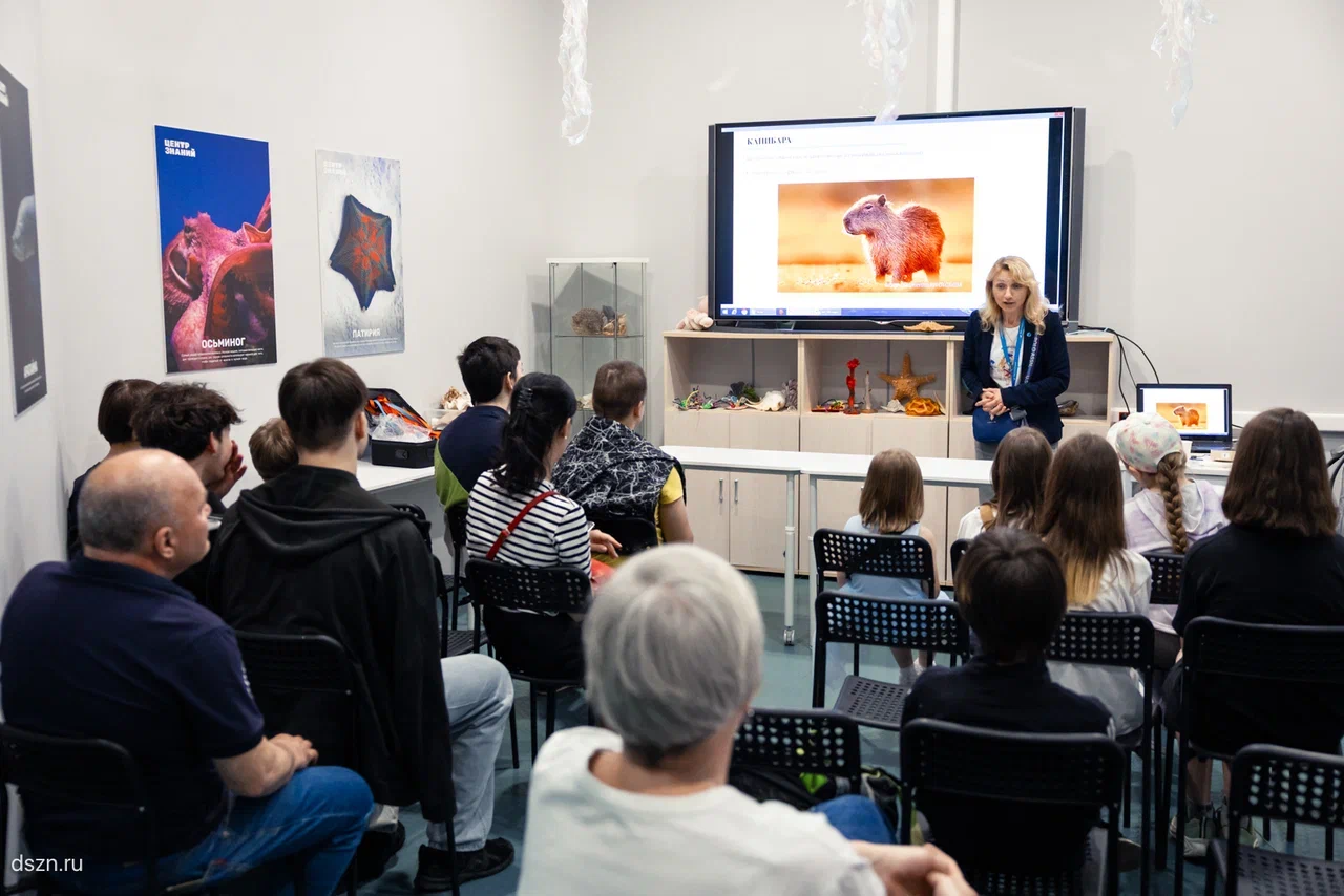 Воспитанники семейных центров «Оберег» и «Притяжение» встретились с капибарами, от которых остались в полном восторге. На занятии «Ка-пи-ба-ра» в Центре знаний в «Москвариуме» ребятам рассказали об этих удивительных животных, их характере, где они обитают, чем питаются и как взаимодействуют с людьми. Также ребята узнали, почему капибара так называется: на языке индейцев это слово переводится как «поедатель тонкой травы».