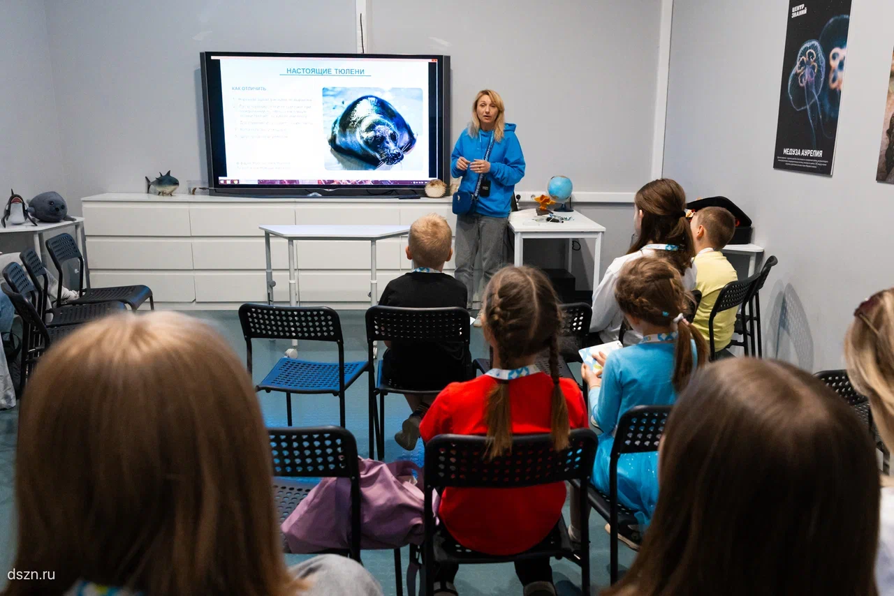 Ребята из семейных центров «Отрадное» и «Оберег» познакомились с байкальскими нерпами. Занятие, во время которого гости узнали о повадках и среде обитания животных, получилось очень интересным и живым. Потом прогулялись по залам океанариума, где познакомились с морскими обитателями со всего света, в том числе с медленными парящими скатами и стремительными зубастыми акулами.