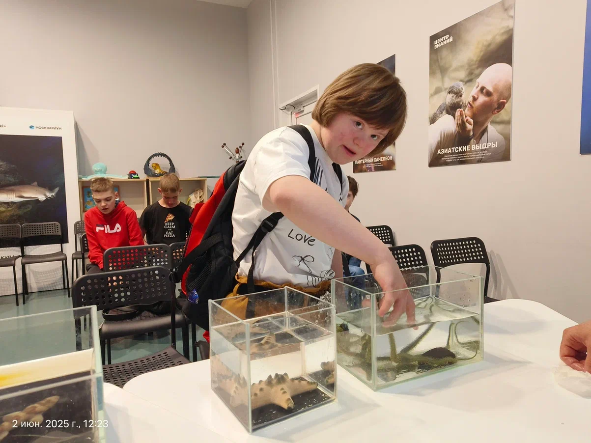А ребята из особых семейных центров «Дом Детей» и «Формула роста» побывали на занятии «Удивительные жители моря». Мальчики и девочки узнали интереснейшие истории о жизни обитателей морей. Огромное впечатление произвело и посещение экспозиции Аквариума. Большие аквариумы с яркими рыбками и морскими хищниками вызвали восхищение и желание прийти в «Москвариум» ещё раз.