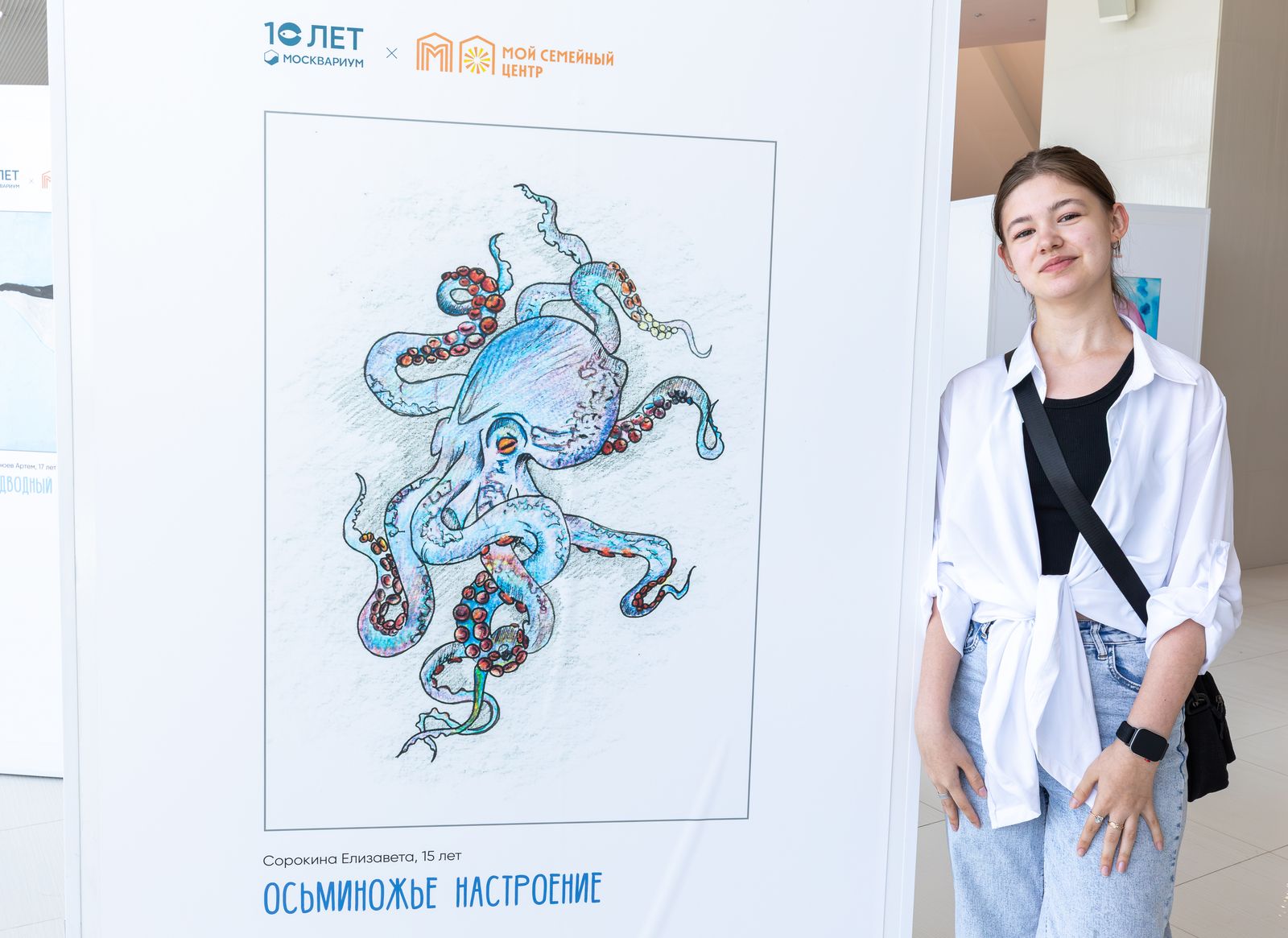 Елизавета Сорокина нарисовала «Осьминожье настроение». По словам девочки, научно-фантастический фильм «Кракен», который она недавно посмотрела, сильно ее впечатлил, поэтому решила изобразить гигантского осьминога.