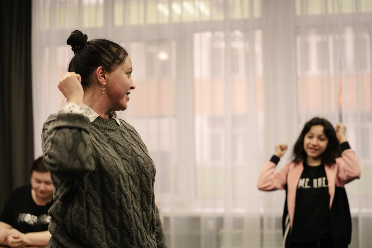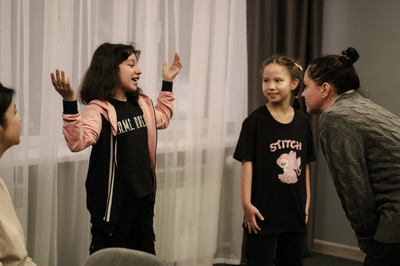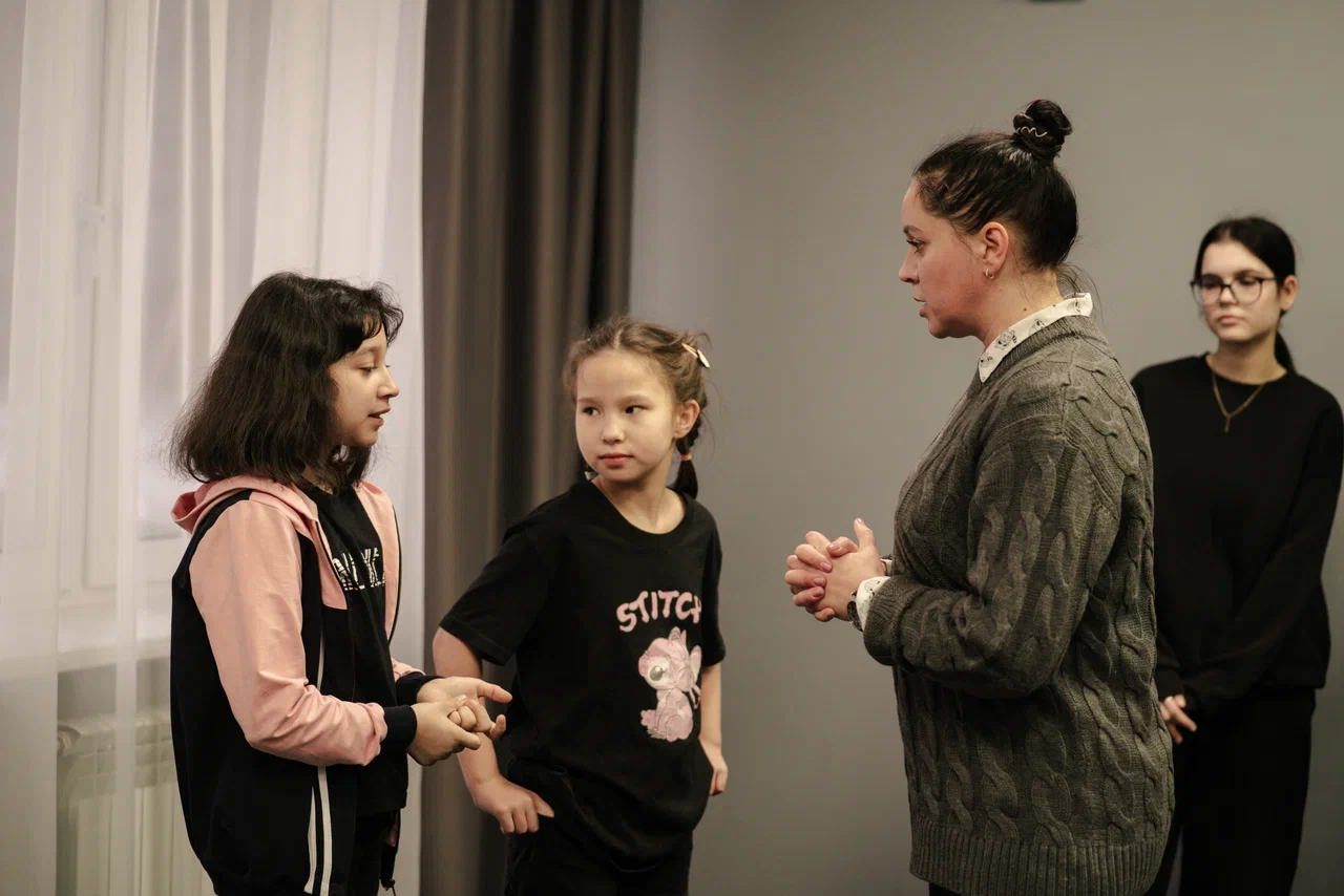 В завершение встречи Ксения провела для детей мастер-класс по базовым навыкам сценического мастерства. Ребята выполняли упражнения на дикцию, воспроизводили разные интонации, учились менять тембр голоса.