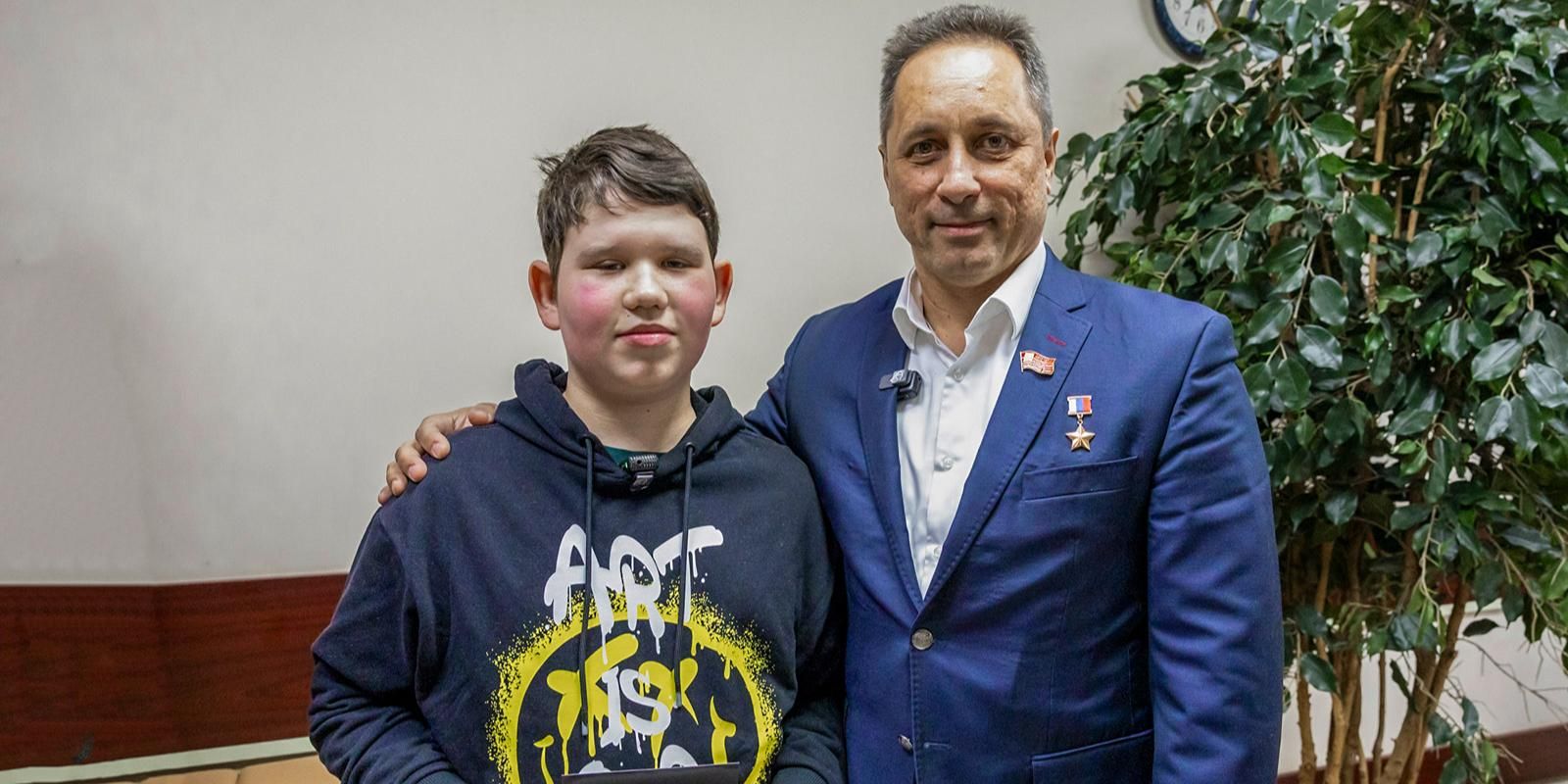 Мальчик мечтал встретиться с космонавтом-испытателем. Герой России Антон Шкаплеров исполнил его желание. Он побеседовал с мальчиком и другими ребятами из центра, рассказал им о своей работе, четырех полетах к Международной космической станции, выходах в открытый космос и о том, как выглядит наша планета с орбиты.
