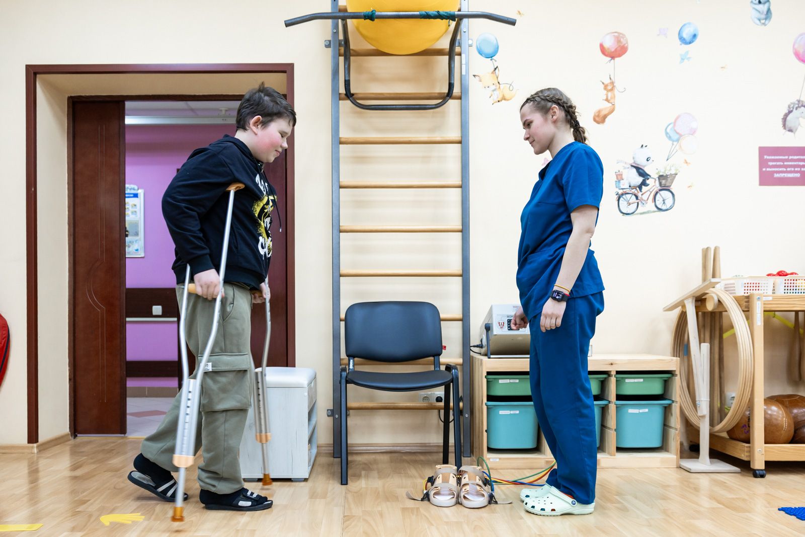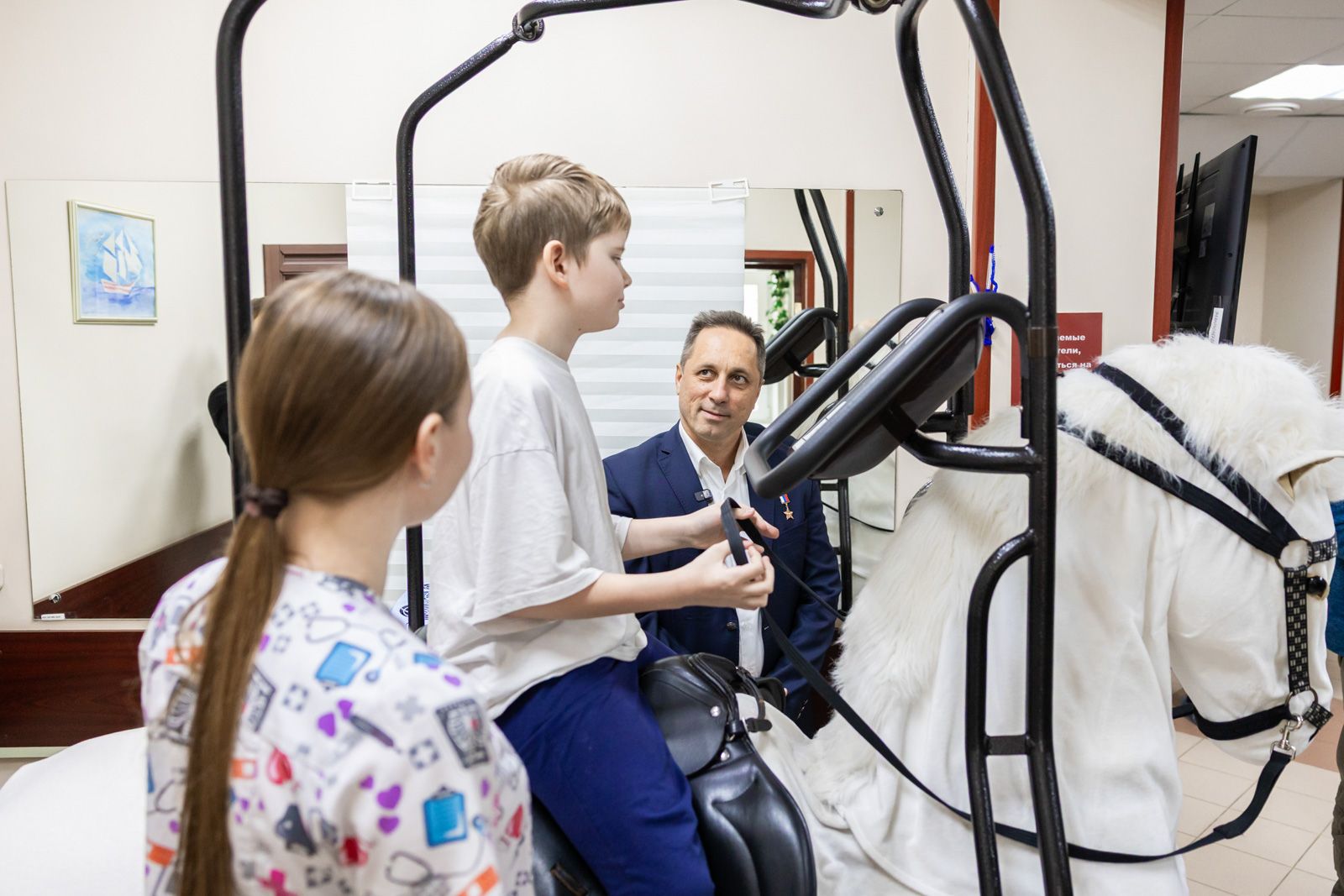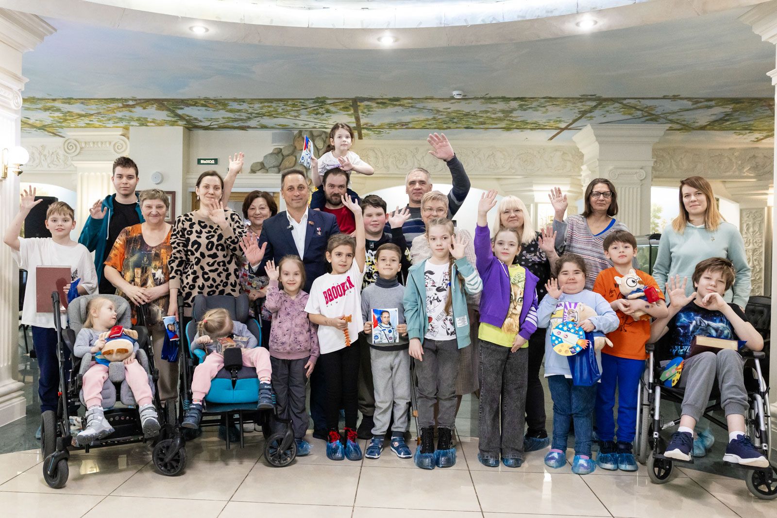 Ребята, в свою очередь, провели для космонавта экскурсию по реабилитационному центру. Особое внимание они уделили тем самым космическим технологиям, которые помогают им в восстановлении. Среди них — тренажеры, созданные учеными аэрокосмической сферы: ботинки «Корвит» для усовершенствования навыка ходьбы и система «Крисаф», благодаря которой ребенок может почувствовать себя парящим в невесомости.