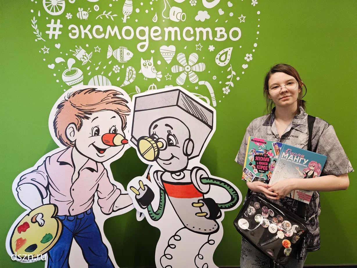На память о встрече сотрудники «Эксмодетство» подарили Лизе две книги по её интересам — гид по Японии и Южной Корее и учебник по рисованию манги «для продвинутых».