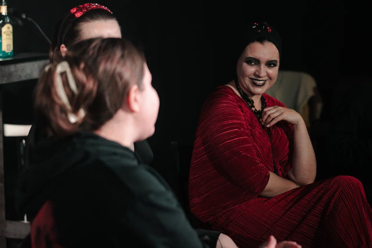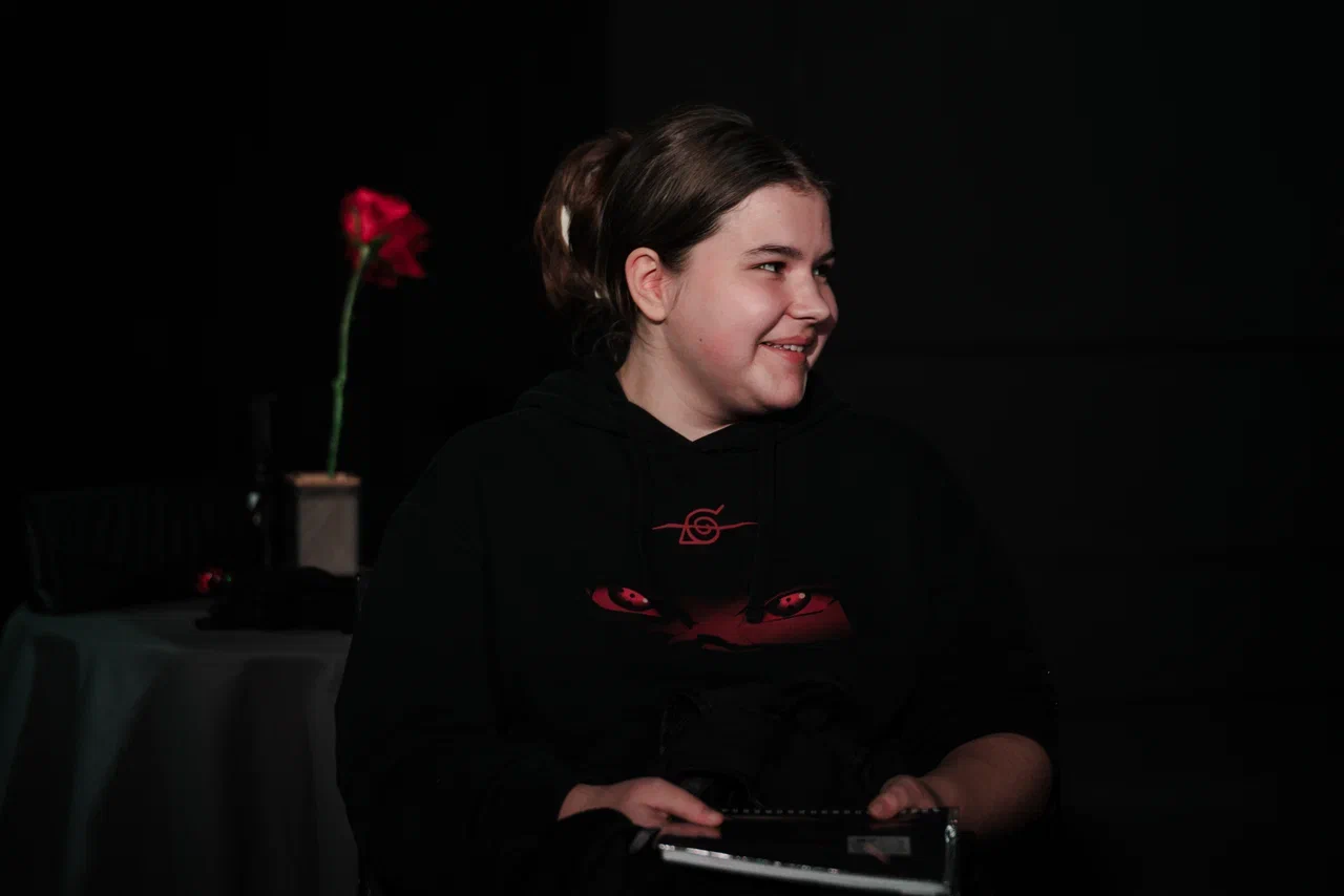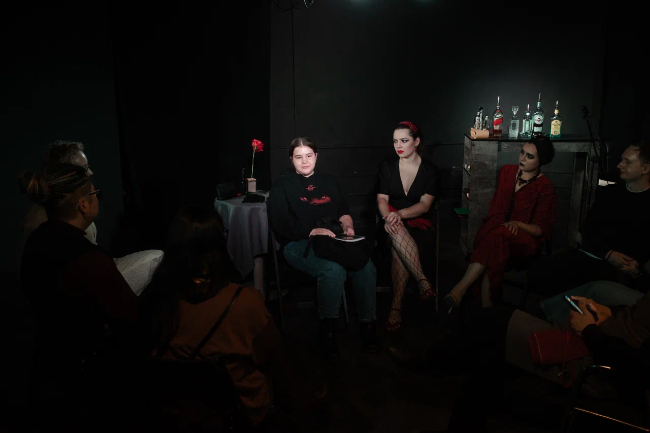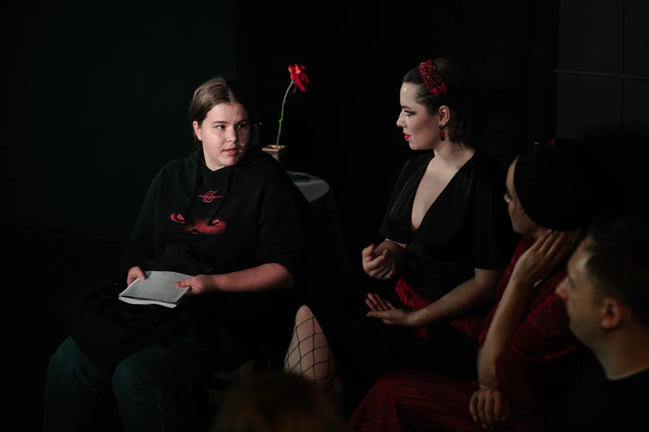 Труппа в этот день давала зажигательную постановку «Набоков/Чёртова дюжина», и приготовления шли полным ходом. После спектакля девушку ждал еще один сюрприз — теплая беседа с актерами в неформальной обстановке. Иоланта о многом спросила артистов, услышала истории из жизни за кулисами и получила профессиональные советы и наставления.