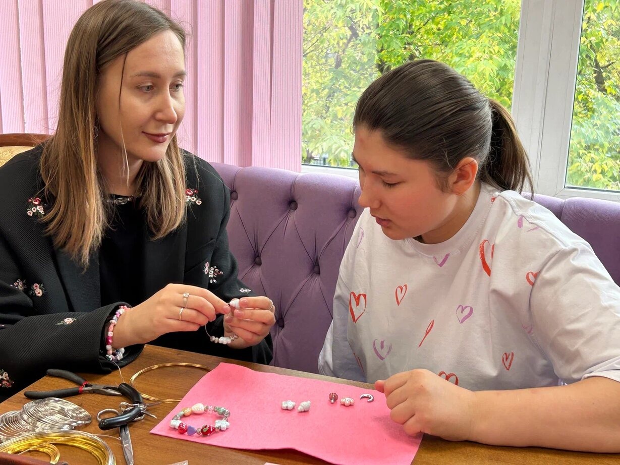 Для Софии, девочки с особенностями здоровья из центра для детей-сирот, участие в проекте «Давай ДруЖИТЬ!» стало началом интересного увлечения. Вместе с наставницей Ольгой Гуржеевой, основательницей бренда украшений из натурального камня «Сияй ярче звёзд», она попробовала себя в создании украшений.